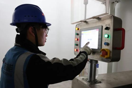 12GW高性能鋰離子儲(chǔ)能電池項(xiàng)目現(xiàn)場(chǎng),工作人員正在調(diào)試設(shè)備。趙菠攝