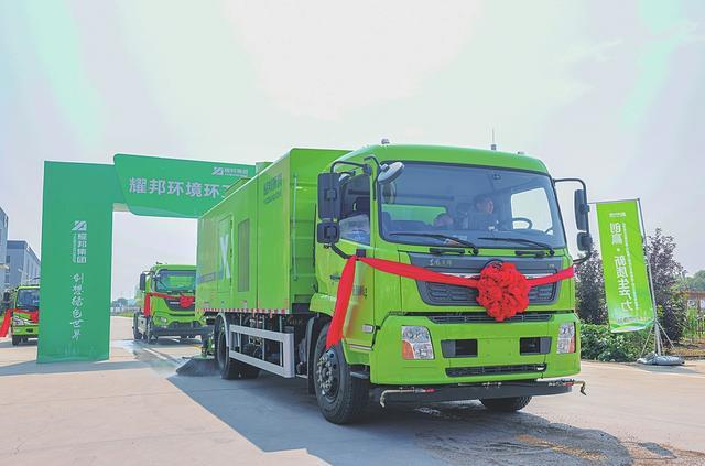 山西耀邦環(huán)境裝備工程有限公司生產(chǎn)的綠色環(huán)衛(wèi)車輛正式下線。山西經(jīng)濟(jì)日報(bào)全媒體記者翁劍攝