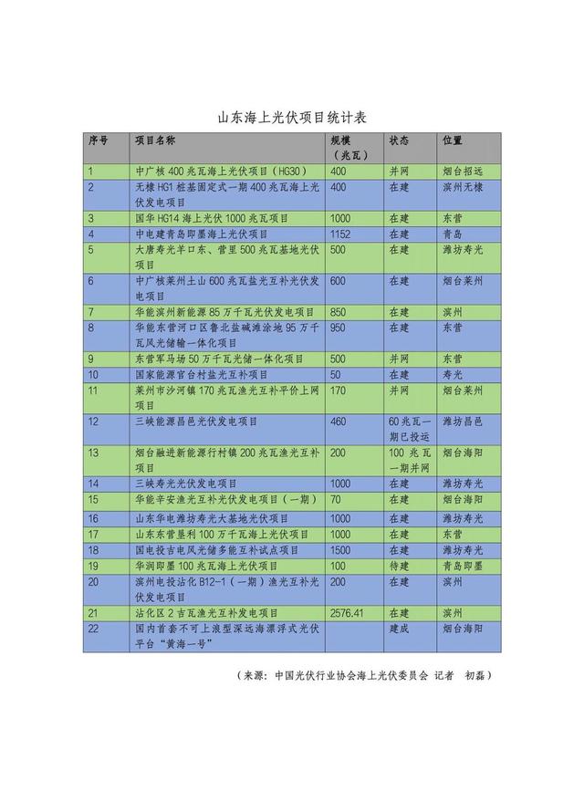 山東省相繼篩選推出1125萬(wàn)樁基固定式海上光伏10個(gè)項(xiàng)目,中國(guó)電力國(guó)際發(fā)展有限公司、國(guó)家能源投資集團(tuán)有限公司、國(guó)家能源集團(tuán)新能源有限責(zé)任公司、山東能源集團(tuán)有限公司、中國(guó)電建新能源集團(tuán)等多家央國(guó)企作為牽頭方入圍。其中,中電建新能源有限公司山東分公司青島即墨HG37海上光伏項(xiàng)目,位于即墨區(qū)田橫鎮(zhèn),總占地3000畝,主要規(guī)劃建設(shè)115萬(wàn)千瓦海上樁基式光伏發(fā)電項(xiàng)目,一期規(guī)模60萬(wàn)千瓦,二期為55萬(wàn)千瓦。