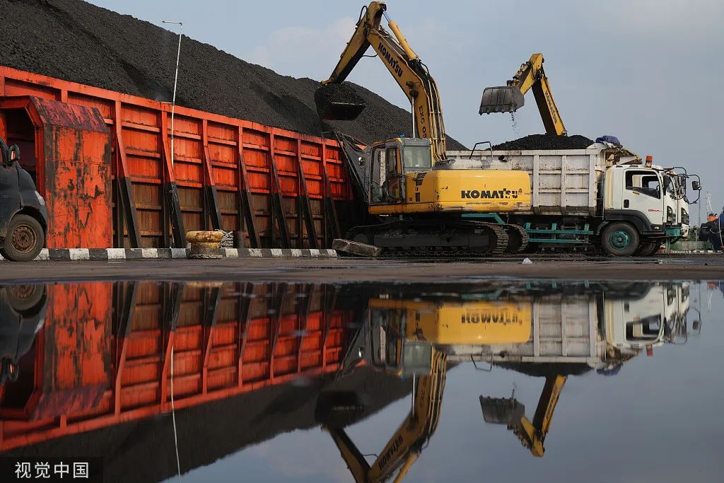 5月11日,印尼西爪哇井里汶港,工人在煤廠工作。(視覺中國)