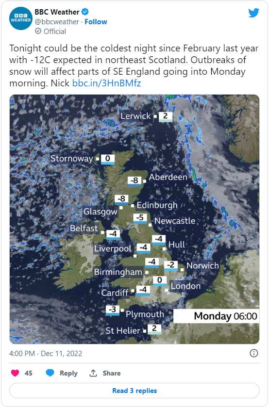 據(jù)了解,英國氣象局在上周四之前發(fā)布了黃色冰雪天氣預(yù)警,而到上周日晚上,倫敦的氣溫將降至零下3攝氏度(26.6華氏度),這將增加供暖需求。英國國家電網(wǎng)公司的數(shù)據(jù)顯示,周一下午5點(diǎn)的用電量預(yù)計將達(dá)到46,695兆瓦的峰值,高于周日的42,930兆瓦的峰值。
