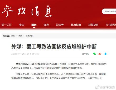 據(jù)路透社巴黎4月11日報道,法國總工會發(fā)言人稱,政府計劃進(jìn)行的養(yǎng)老金改革引發(fā)罷工,法國電力公司在法國經(jīng)營的9座核反應(yīng)堆維護(hù)中斷。