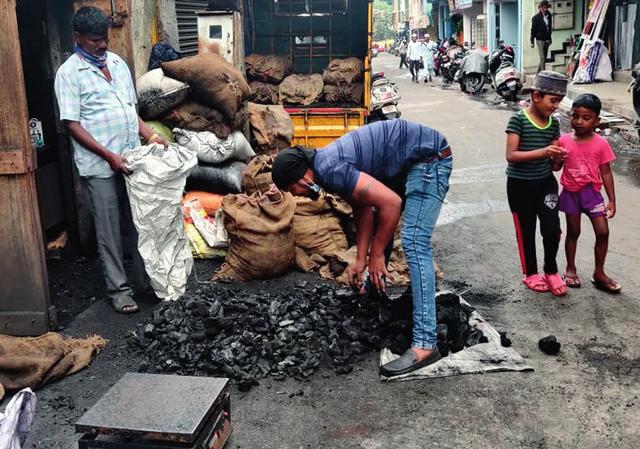 商販在印度城市班加羅爾出售煤炭(2021 年 10 月 15 日攝) 攝影 / 本刊