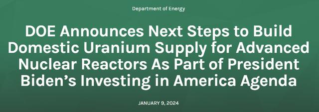 日內(nèi)全球鈾礦商的股票大漲,因美國(guó)政府周二(1月9日)表示正在征集投標(biāo)以促進(jìn)其國(guó)內(nèi)的核燃料生產(chǎn)。