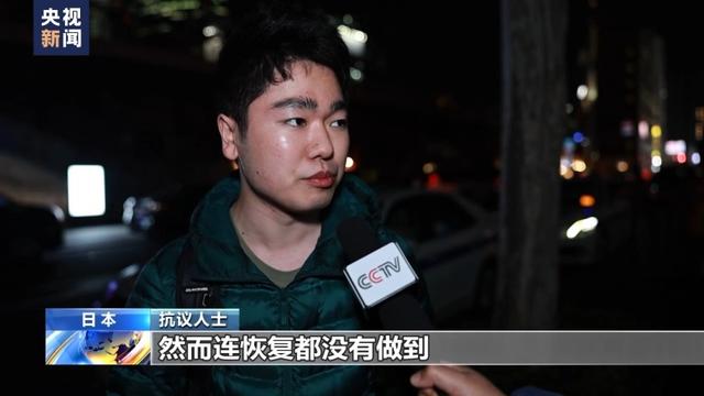 抗議人士:我希望立即停止核污染水排海。我認(rèn)為這是日本的恥辱。