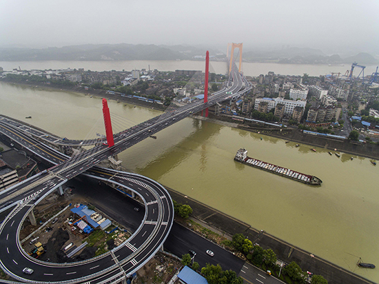 至喜長江大橋是湖北宜昌市建設(shè)的第六座長江大橋,葛洲壩路橋公司以BT模式投資參建了至喜長江大橋,并獨立承擔了三江橋與引橋、西壩立交與江北立交的全部施工任務,于2016年7月正式建成通車試運營。在施工過程中,葛洲壩路橋公司始終堅持科技創(chuàng)新,提升工程品質(zhì),攻克了不對稱弧形變截面薄翼板箱梁掛籃施工技術(shù)、加高鏤空液壓爬架翻模施工技術(shù)、塔吊大橫桿超長附作技術(shù)、快速拼裝0號塊支架施工技術(shù)、鋼混結(jié)合圍堰施工技術(shù)等關(guān)鍵技術(shù),取得了豐富的科技創(chuàng)新成果。研發(fā)的《中央索面不對稱弧形變截面箱梁斜拉橋施工關(guān)鍵技術(shù)》,被中國公路建設(shè)行業(yè)協(xié)會鑒定為國際先進,成功解決了斜拉橋施工中一系列技術(shù)難題,促進了該橋型在橋梁建設(shè)行業(yè)內(nèi)的發(fā)展。