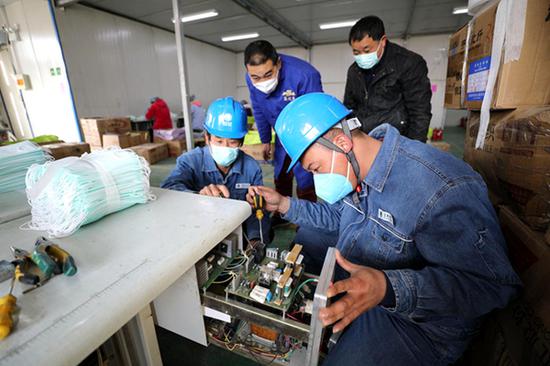 2月13日,在蕭縣丁里工業(yè)園,蕭縣供電公司副總經理王海濤帶著營銷部負責人和供電所服務人員來到生產醫(yī)用防護口罩的華源家居用品公司,為該企業(yè)全面檢查用電設備、優(yōu)化保供電方案,設立常駐保供電客戶經理,確保企業(yè)用電無憂。(馮巖 李令響)