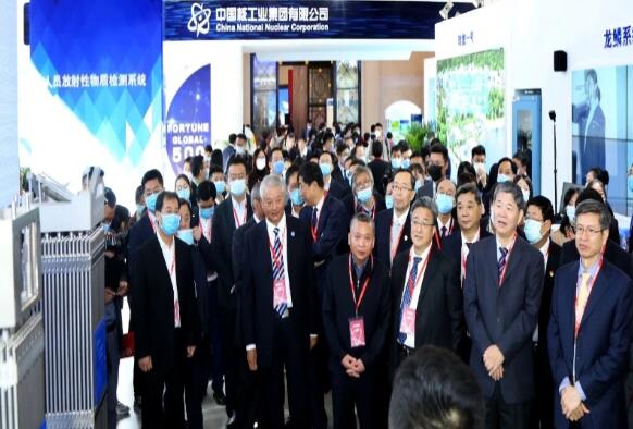 工業(yè)和信息化部副部長、國家原子能機構(gòu)主任張克儉,生態(tài)環(huán)境部副部長、國家核安全局局長劉華,中國科協(xié)書記處書記宋軍,國家能源局副局長劉寶華,國家知識產(chǎn)權(quán)局副局長周暉國,全國政協(xié)常委、中國核學(xué)會理事會理事長王壽君,全國政協(xié)常委穆占英,中核集團董事長余劍鋒,中國科學(xué)院院士詹文龍,中國工程院院士歐陽曉平,中核集團副總經(jīng)理申彥鋒、總工程師雷增光以及來自英國、法國等十余個國家的政府官員和專家出席開幕式,并參觀了中核集團展臺。
