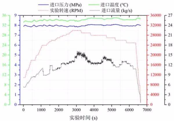 科研人員對測試平臺進行了改進,優(yōu)化了壓縮機實驗循環(huán)系統(tǒng),使得實驗進口狀態(tài)始終穩(wěn)定在設計參數(shù)(8MPa,35℃)附近;改進了壓縮機進口狀態(tài)測量方法,采用間接測量法,極大地提高了壓縮機進口溫度測量精度及響應特性,進口溫度間接測量誤差小于0.025℃,遠小于現(xiàn)有A級溫度傳感器測量誤差。