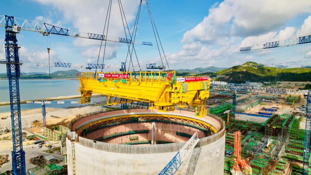 8月24日,華龍一號批量化工程——福建漳州核電1號機組環(huán)吊橋架整體吊裝就位,這是華龍一號核電機組首次實現(xiàn)環(huán)吊整體吊裝“零的突破”,為該機組主設備施工提前釋放了工作面,為后續(xù)主設備引入及內(nèi)穹頂?shù)跹b打下堅實基礎。