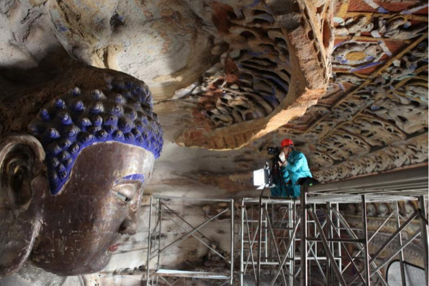 云岡石窟第九窟數(shù)字化采集現(xiàn)場(chǎng)。云岡研究院供圖