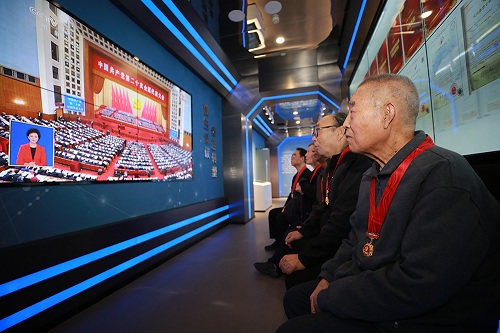 國(guó)網(wǎng)山東濱州供電公司組織“光榮在黨50年”老黨員在新時(shí)代文明實(shí)踐基地收看中國(guó)共產(chǎn)黨第二十次全國(guó)代表大會(huì)開(kāi)幕會(huì)。