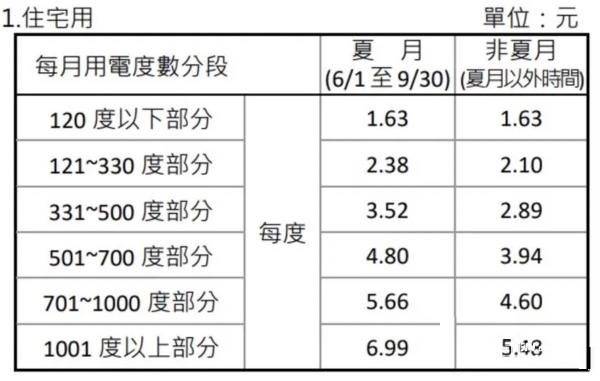 今年6月底,臺(tái)經(jīng)濟(jì)主管部門(mén)以燃料價(jià)格上漲為由,宣布自7月1日起對(duì)用電大戶調(diào)漲電價(jià),產(chǎn)業(yè)界高壓、特高壓電力用戶電費(fèi)上調(diào)15%,遠(yuǎn)超預(yù)估的8%;用電超過(guò)1000度以上的住宅用戶,超出千度部分調(diào)漲9%,受影響住宅用戶約36萬(wàn)戶;整體平均電價(jià)上調(diào)8.4%,超出了電價(jià)單次漲幅3%的天花板,平均電價(jià)由每度2.6253元新臺(tái)幣調(diào)漲到2.8458元新臺(tái)幣。