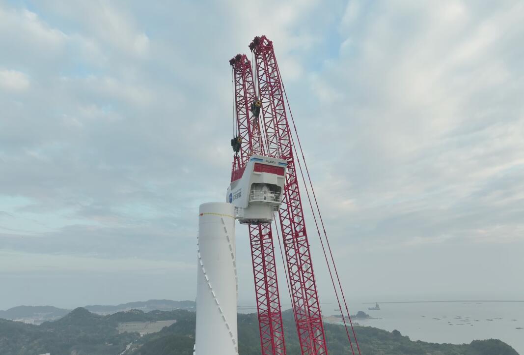 廣東首個風(fēng)電臨海試驗基地試驗風(fēng)機吊裝。