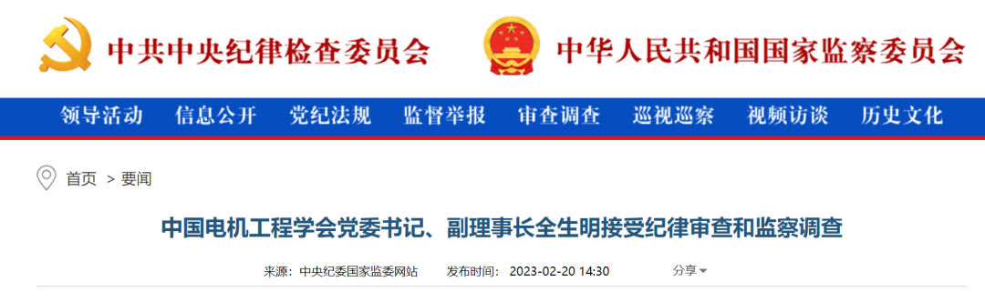 中央紀(jì)委國家監(jiān)委網(wǎng)站2月20日消息,據(jù)中央紀(jì)委國家監(jiān)委駐國家電網(wǎng)有限公司紀(jì)檢監(jiān)察組、安徽省紀(jì)委監(jiān)委消息:中國電機(jī)工程學(xué)會黨委書記、副理事長全生明涉嫌嚴(yán)重違紀(jì)違法,目前正接受中央紀(jì)委國家監(jiān)委駐國家電網(wǎng)有限公司紀(jì)檢監(jiān)察組和安徽省馬鞍山市監(jiān)察委員會聯(lián)合審查調(diào)查。