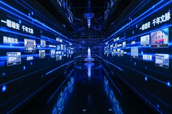 “雄安印象”總建筑面積約5300平方米,是集城市體驗(yàn)、藝術(shù)展陳、休閑娛樂功能于一體的綜合性文化場館。該場館一層為雄安印象·城市廳,二層為雄安印象·藝術(shù)廳。其中,城市廳由“雄安·共生”“雄安·共建”“雄安·共享”三個(gè)展區(qū)組成,在增強(qiáng)現(xiàn)實(shí)AR、裸眼3D、多媒體觸屏互動(dòng)等數(shù)字科技的加持下,呈現(xiàn)了科技城市交融共生的數(shù)字景觀,展示了雄安歷史文化脈絡(luò)和建設(shè)發(fā)展歷程。藝術(shù)廳以常設(shè)展、特展、跨界活動(dòng)、線上展覽等多種形式貫穿全部展廳及公共空間,打造雄安文化交流、藝術(shù)探討和傳播的文化藝術(shù)實(shí)踐基地。(于祎凡)