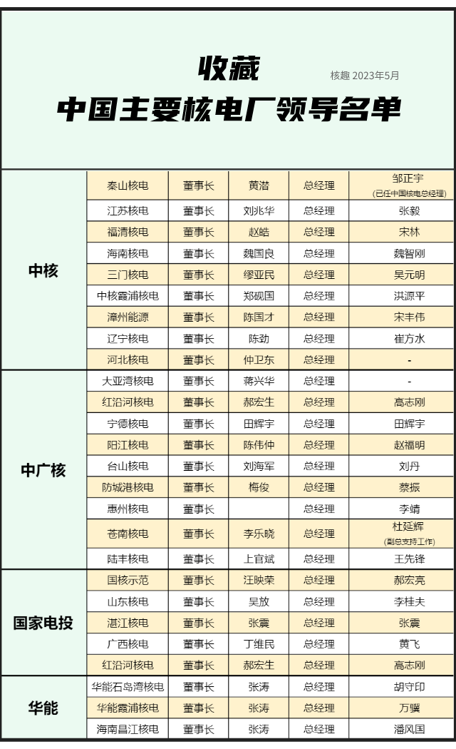 海南核電 | 董事長 | 魏國良(退休) | 總經(jīng)理 | 魏智剛 |