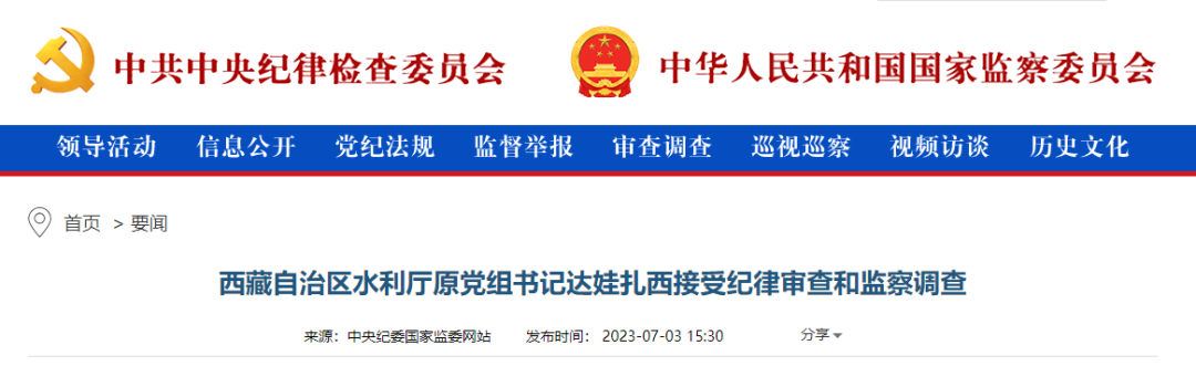 中央紀(jì)委國(guó)家監(jiān)委網(wǎng)站7月3日消息,據(jù)西藏自治區(qū)紀(jì)委監(jiān)委消息:西藏自治區(qū)水利廳原黨組書記達(dá)娃扎西涉嫌嚴(yán)重違紀(jì)違法,目前正接受西藏自治區(qū)紀(jì)委監(jiān)委紀(jì)律審查和監(jiān)察調(diào)查。