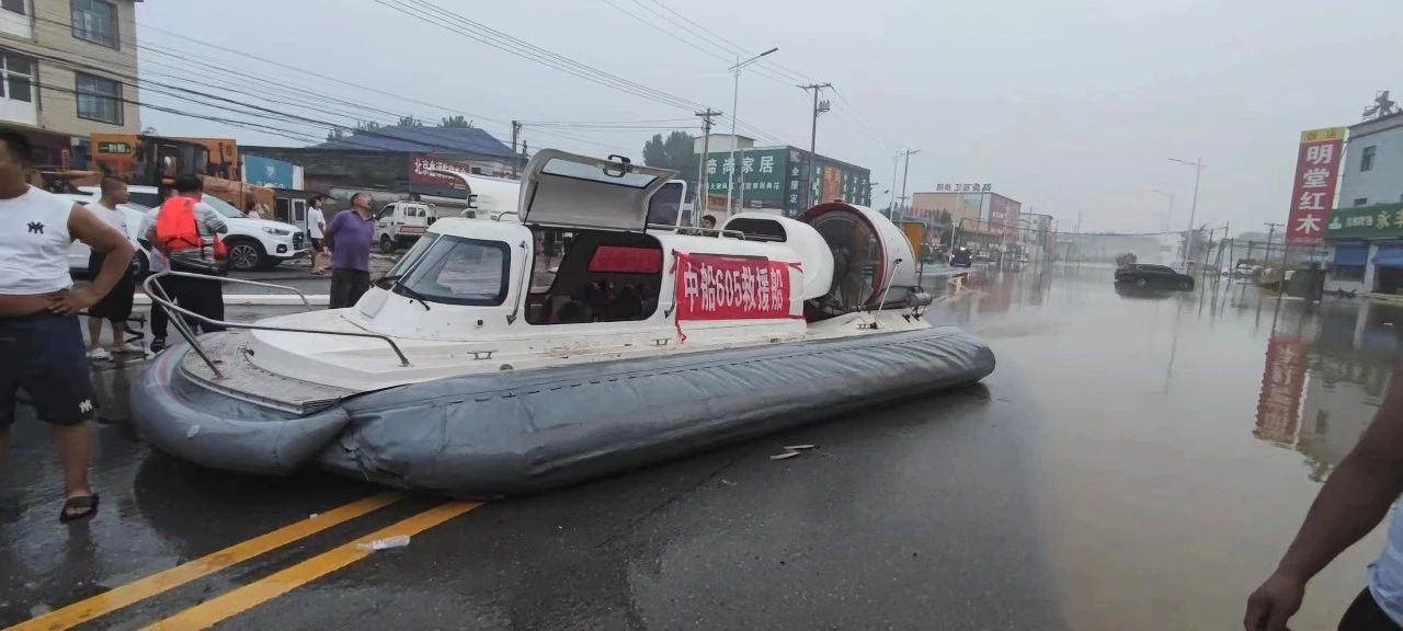 8月2日,中國船舶六〇五院出動最新科研成果“陸海無限通行”HW-15氣墊船抵達深水一線,參與河北涿州搶險救災(zāi),支援當?shù)卣冯x受災(zāi)群眾和運送物資。