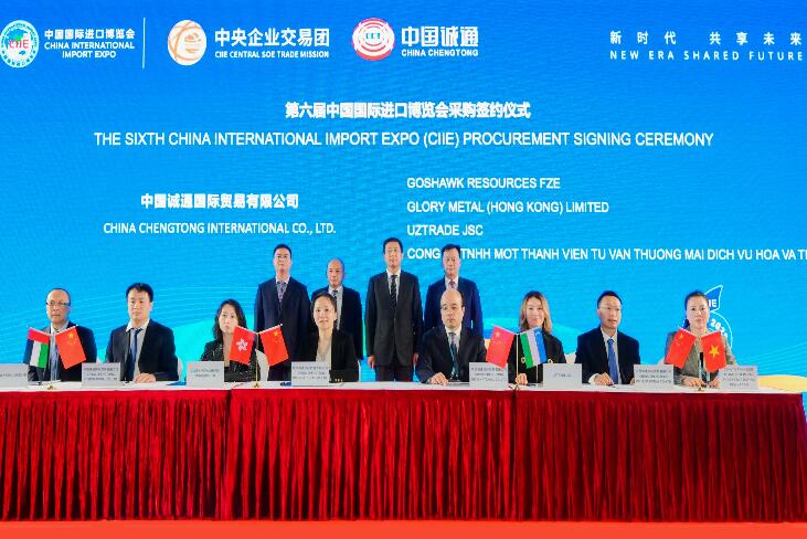 11月7日,中國誠通4家所出資企業(yè)分別與來自阿聯酋、巴西等14個國家和地區(qū)的28家客商簽署采購協議。簽約金額合計達18.5億美元,較上屆進博會增長12%,較首屆增長106%。采購產品既有鉻礦、錳礦、煤炭、紙漿、甲醇、棉紗等重要資源型產品,也有如電極、電池裝配設備等高新技術產品首次參加簽約。