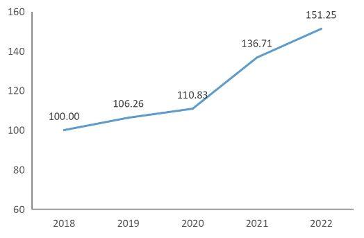 指數(shù)運(yùn)行結(jié)果顯示,2022年,內(nèi)蒙古現(xiàn)代能源經(jīng)濟(jì)發(fā)展指數(shù)達(dá)151.25點(diǎn),同比增長10.64%。