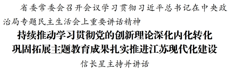 1月8日,江蘇省委常委會召開會議,深入學(xué)習(xí)領(lǐng)會習(xí)近平總書記在中央政治局專題民主生活會上的重要講話和中央通報(bào)精神,認(rèn)真對照檢查,明確改進(jìn)方向。省委書記信長星主持會議并講話。省委常委同志交流學(xué)習(xí)體會。會上通報(bào)了省委常委會專題民主生活會查擺問題整改落實(shí)、主題教育省級層面專項(xiàng)整治情況。
