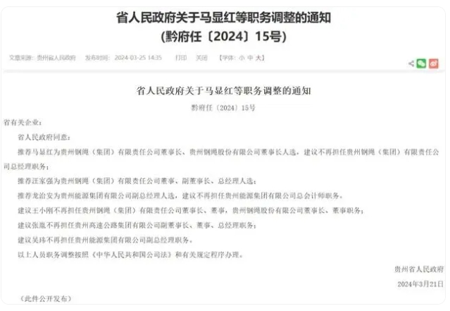 推薦馬顯紅為貴州鋼繩(集團)有限責任公司董事長、貴州鋼繩股份有限公司董事長人選,建議不再擔任貴州鋼繩(集團)有限責任公司總經理職務;