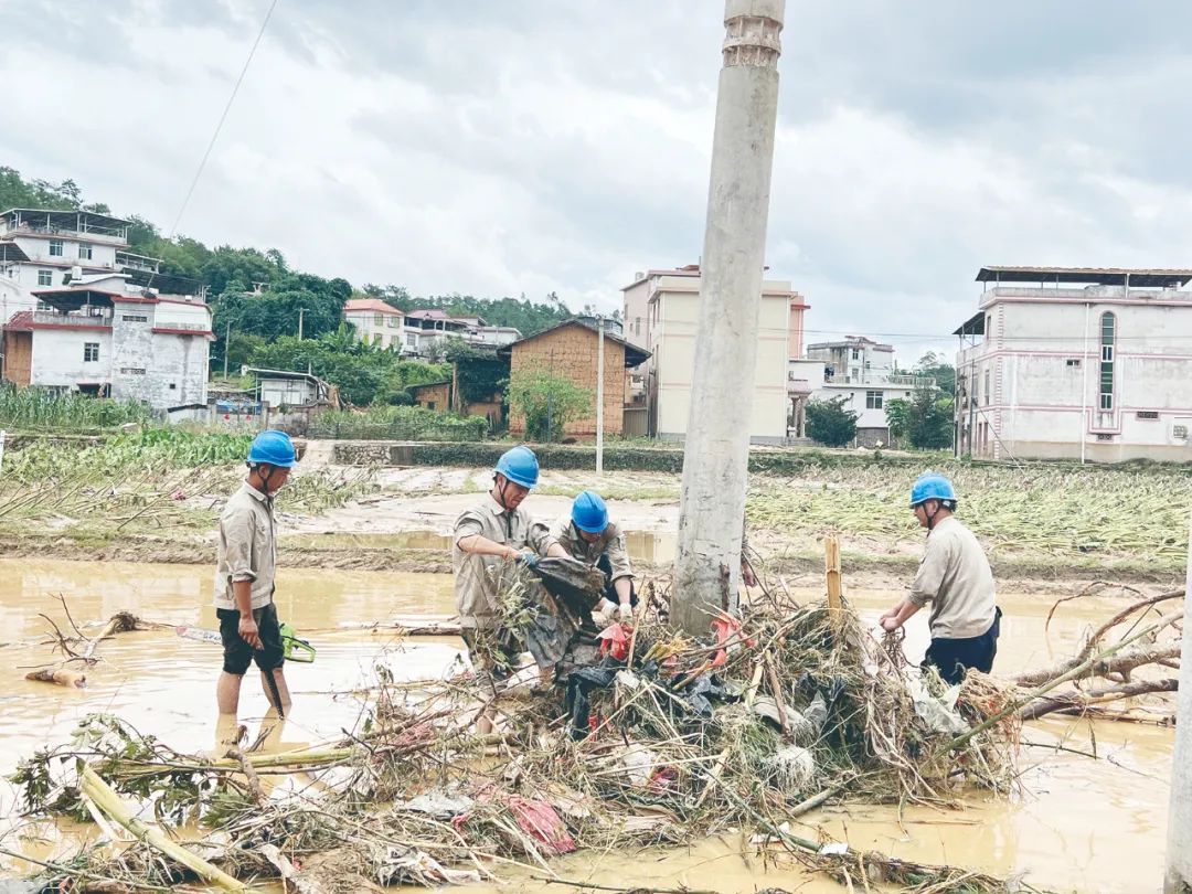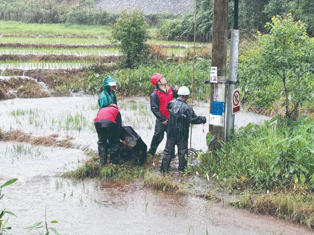 ▲圖為6月17日,國網(wǎng)福建永定區(qū)供電公司支援搶修隊(duì)伍對上杭縣10千伏稔洪線電桿傾斜現(xiàn)場開展搶修工作。黃小芬/攝