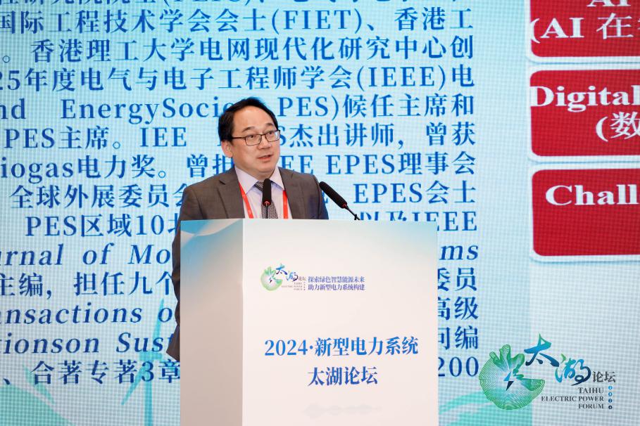 加拿大工程院院士、香港理工大學鐘志勇教授作了題為《智能電網技術革新:人工智能和數字孿生的新機遇與挑戰(zhàn)》的主旨報告