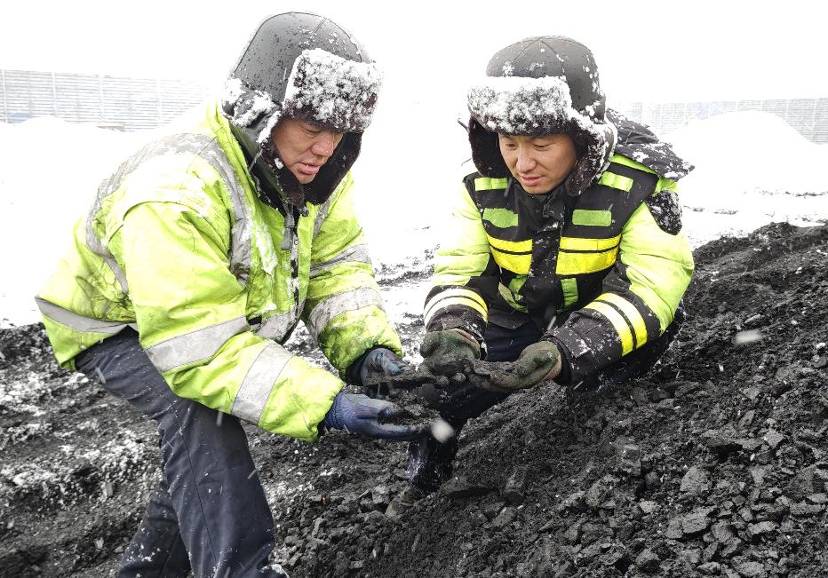 七臺(tái)河發(fā)電公司燃料戰(zhàn)線(xiàn)人員檢查燃煤冰凍情況
