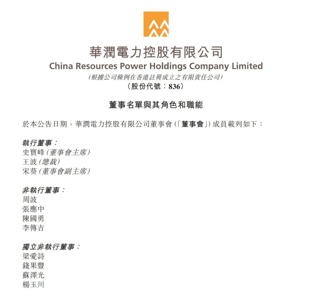 12月16日,華潤電力發(fā)布公告,自2024年12月16日起,張軍政辭任執(zhí)行董事兼董事會副主席,王波獲委任為執(zhí)行董事兼總裁。張軍政因其他業(yè)務安排選擇辭任,并確認與董事會沒有意見分歧,無需向股東或香港聯(lián)合交易所提請關(guān)注的事項。董事會對張軍政在任期間的貢獻表示感謝。