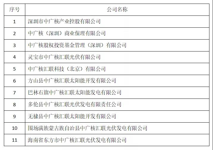 二、經(jīng)檢索查詢發(fā)現(xiàn),目前有深圳市中廣核產(chǎn)業(yè)控股有限公司、中廣核(深圳)商業(yè)保理有限公司等11家公司(附表)冒名使用“中廣核”字號或商標(biāo),對我集團品牌造成嚴(yán)重侵權(quán)。