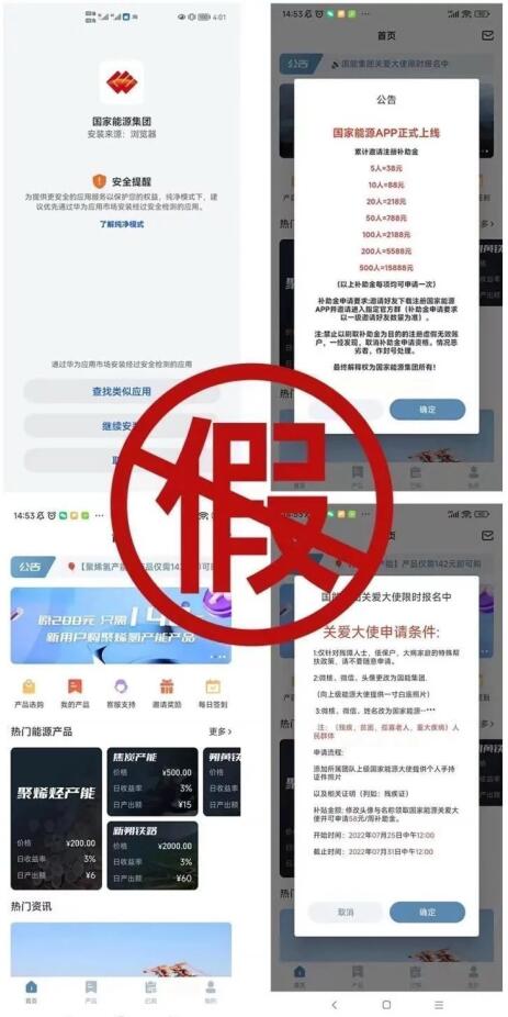 8月29日,國家能源集團(tuán)發(fā)布公告稱,近期,有不法分子假冒“國家能源集團(tuán)”名義發(fā)布手機(jī)應(yīng)用程序,建立虛假“國家能源官方微信群”,并提供虛假的“神東礦區(qū)”“朔黃鐵路”等所謂“投資產(chǎn)品”。