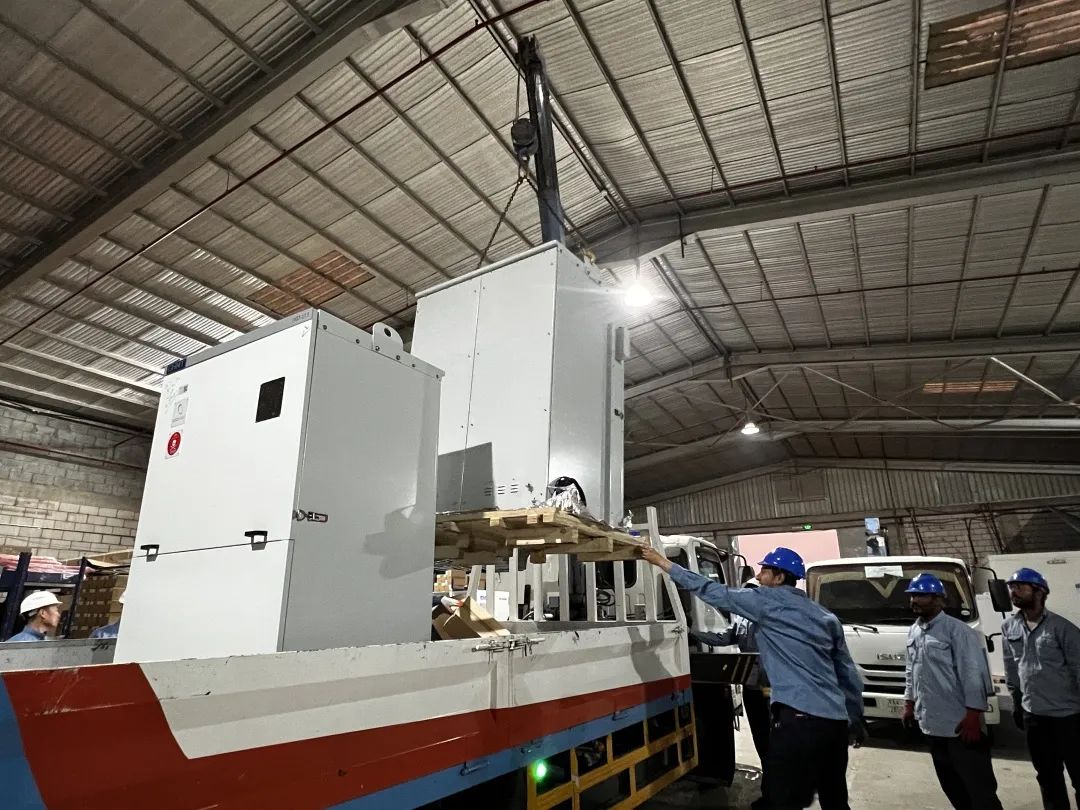 “我們要趁著太陽還沒升起,盡可能把今天的施工進(jìn)度往前趕。”今年49歲的蔡永平是中國電力技術(shù)裝備有限公司沙特分公司總經(jīng)理,也是沙特?cái)?shù)字化智能環(huán)網(wǎng)柜項(xiàng)目負(fù)責(zé)人。此刻,他正與當(dāng)?shù)胤职添?xiàng)目總監(jiān)扎卡里亞確認(rèn)當(dāng)天的施工計(jì)劃,確保每一支施工隊(duì)伍都能在倉庫領(lǐng)到需要安裝的環(huán)網(wǎng)柜設(shè)備及配件。