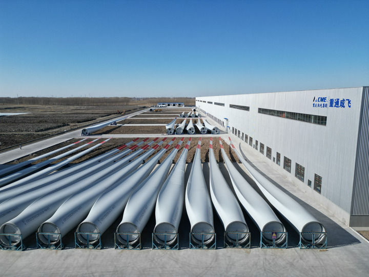 一批批風(fēng)機(jī)裝備制造產(chǎn)業(yè)落戶東北。在中國一重龍申(齊齊哈爾)復(fù)合材料有限公司葉片制造園區(qū),工人們正在生產(chǎn)風(fēng)電葉片。“從2021年4月啟動建設(shè)園區(qū),到2022年5月第一支76米葉片下線,到正在生產(chǎn)中的98米葉片模具,旺盛需求推著我們加緊研發(fā)、突破瓶頸、全速前進(jìn)。”公司總經(jīng)理徐戈說。
