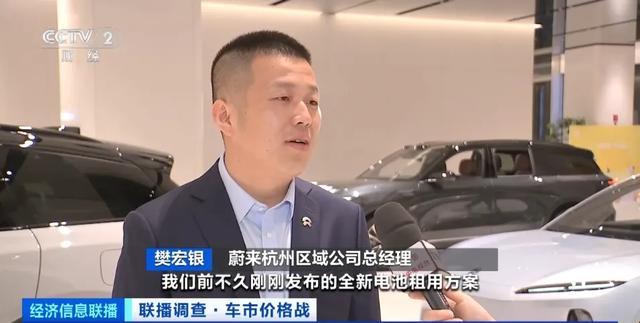 蔚來杭州區(qū)域公司總經(jīng)理 樊宏銀:我們前不久發(fā)布的全新電池租用方案,買車不用買電池,車價立減7萬元或者12.8萬元。