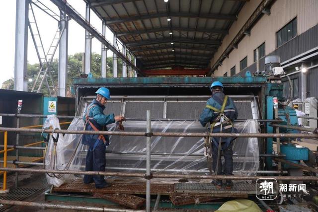 天色已晚,但在浙能嘉興發(fā)電廠里,仍有不少戴著安全帽的人員三三兩兩聚在一起,旋轉(zhuǎn)濾網(wǎng)前的抓海蜇工作仍沒(méi)有停止。