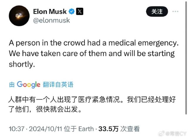 10:32 在活動現(xiàn)場有人暈倒。馬斯克在推特上回復稱,由于有人需要緊急醫(yī)療,特斯拉將在開場之前先照顧他們。