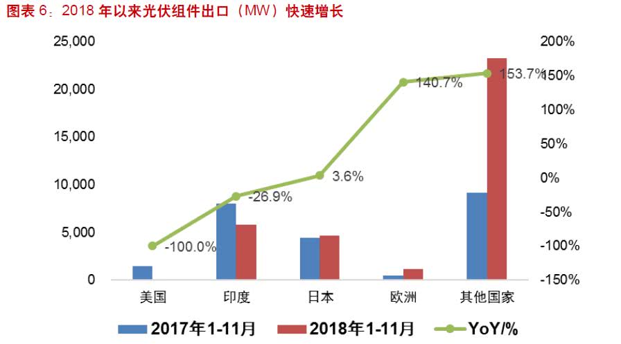 中國(guó)光伏行業(yè)協(xié)會(huì)的數(shù)據(jù)顯示,制造端的數(shù)據(jù),也顯示了“531”新政的威力:多晶硅去年上半年產(chǎn)量同比增長(zhǎng)約24%,全年產(chǎn)量?jī)H增長(zhǎng)3.3%;硅片去年上半年產(chǎn)量增長(zhǎng)約39%,全年同比增長(zhǎng)19.1%;組件去年上半年增長(zhǎng)約24%,全年產(chǎn)量增速約14.3%。