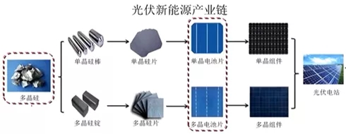 光伏產業(yè)鏈相對簡單,產業(yè)鏈上游主要是將半導體材料硅提煉成晶硅,中游廠商再將晶硅制作成電池片并生產相關的光伏組件,下游廠商則將電池片組裝成完整的發(fā)電系統(tǒng)并進行維護和管理。