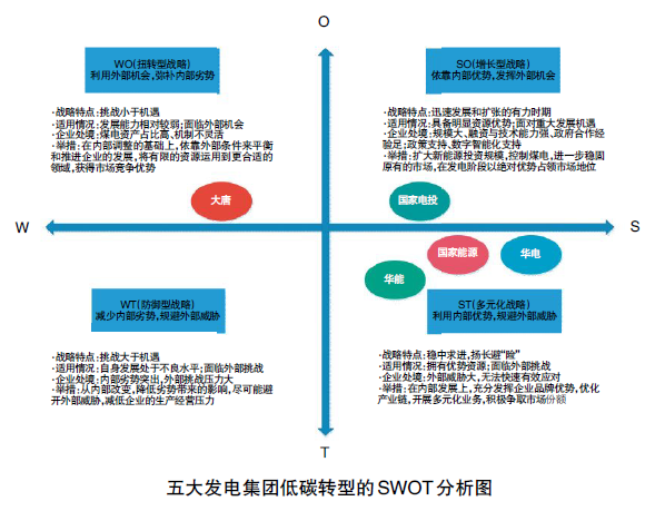 面對內(nèi)部火電比例較高、火電廠經(jīng)營不善、煤化工業(yè)務虧損等多重壓力和挑戰(zhàn),大唐集團近年來發(fā)展相對滯后。因此,大唐集團需采取WO扭轉型戰(zhàn)略,積極推動企業(yè)轉方式、調結構、增動力、強活力,扭轉粗放發(fā)展方式,加強煤電與其他業(yè)務協(xié)同發(fā)展,實現(xiàn)煤電低碳轉型,利用有限的資源積極發(fā)展新能源業(yè)務,實現(xiàn)經(jīng)營發(fā)展全面轉好的根本性轉變。