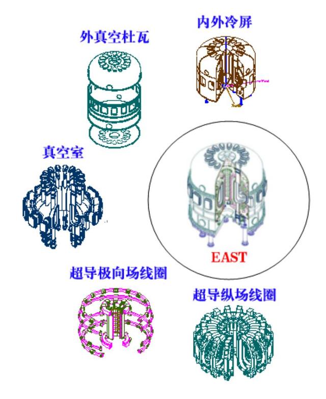 ▲全超導(dǎo)托卡馬克核聚變實驗裝置(EAST)