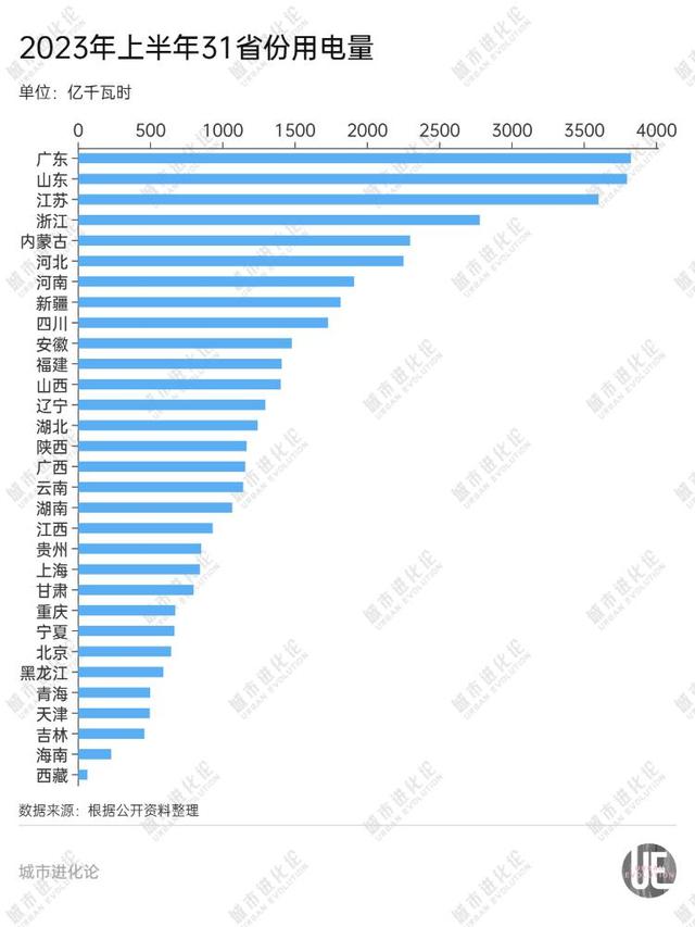 廣東、山東、江蘇全社會用電量在3000億千瓦時階段“三雄相爭”,浙江、內(nèi)蒙古和河北競速2000億千瓦時階段,而剩下的河南、新疆等12個全社會用電量達(dá)到千億千瓦時的省份,只能爭奪剩下的4個席位。