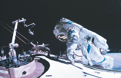 12月21日在北京航天飛行控制中心拍攝的神舟十七號(hào)航天員唐勝杰開(kāi)展艙外操作的畫面。(新華社發(fā))