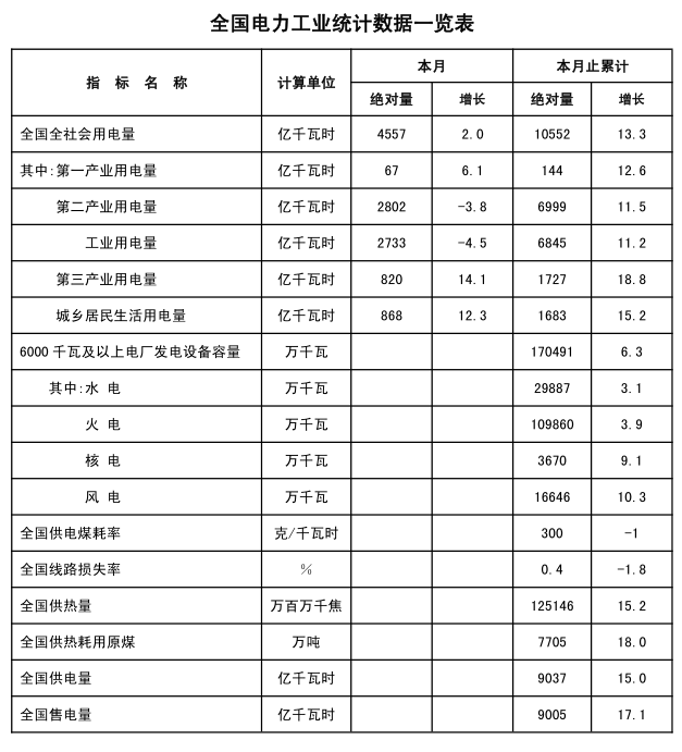 注:全社會用電量指標(biāo)是全口徑數(shù)據(jù)。