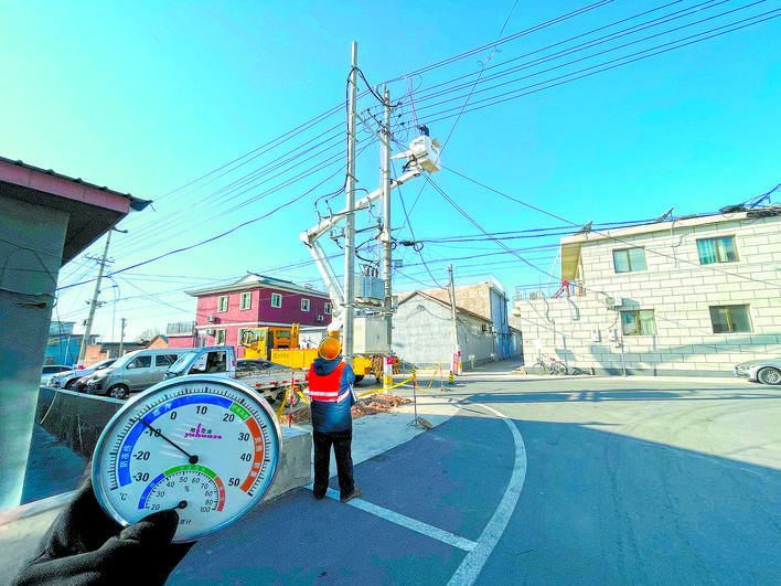 圖② 1月6日,北京平谷供電公司帶電班開展帶電接火作業(yè),保障電力可靠供應(yīng)。黃曉東 張強 攝