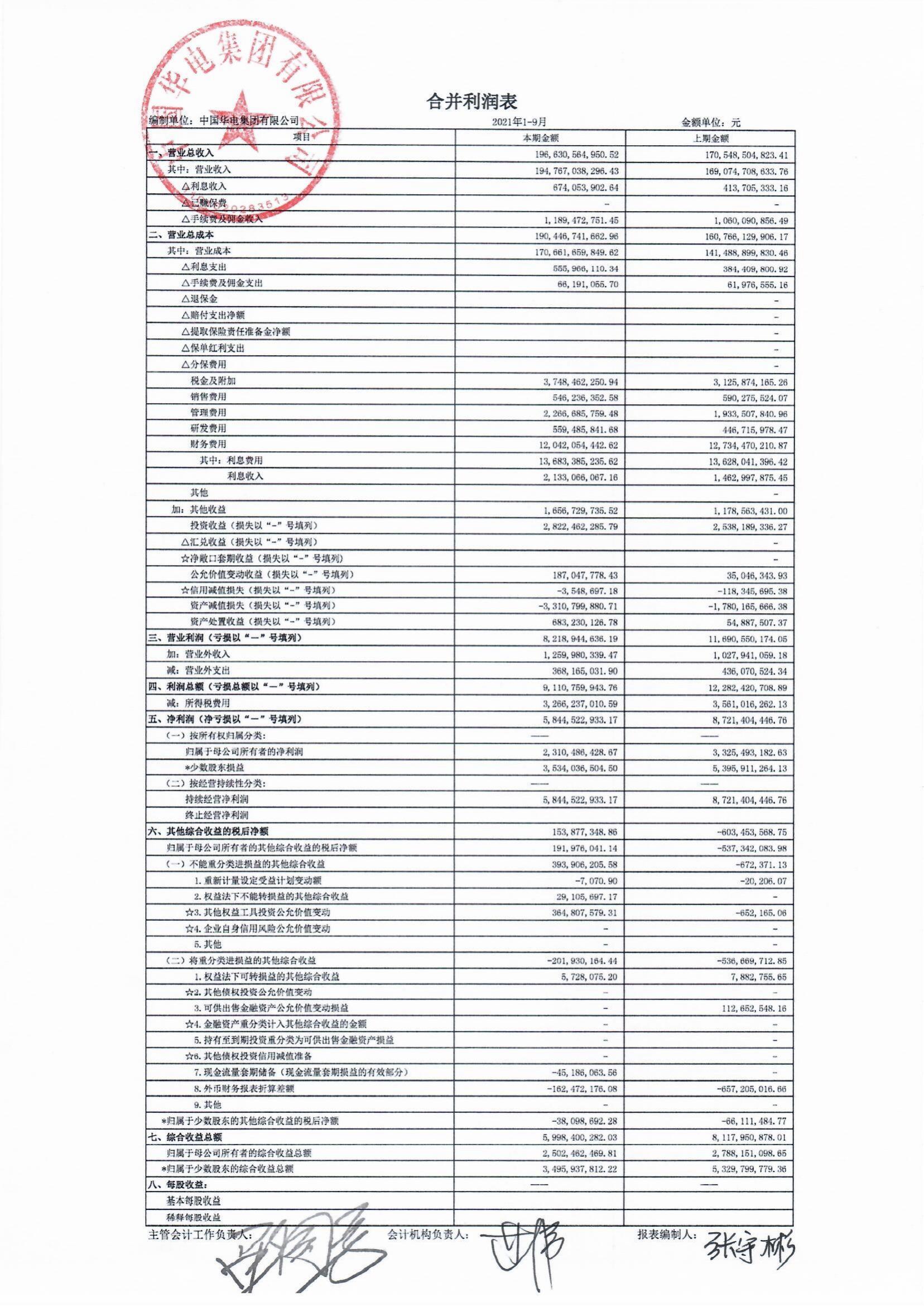 前三季度,華能集團實現(xiàn)營業(yè)總收入2713.9億元,上年同期2212.3億元,同比增長約22.7%;
