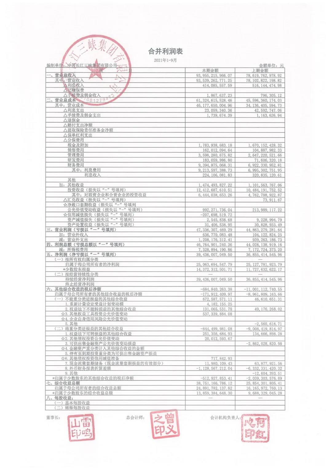 前三季度,三峽集團實現(xiàn)營業(yè)總收入939.6億元,上年同期786.2億元,同比增長約19.5%;