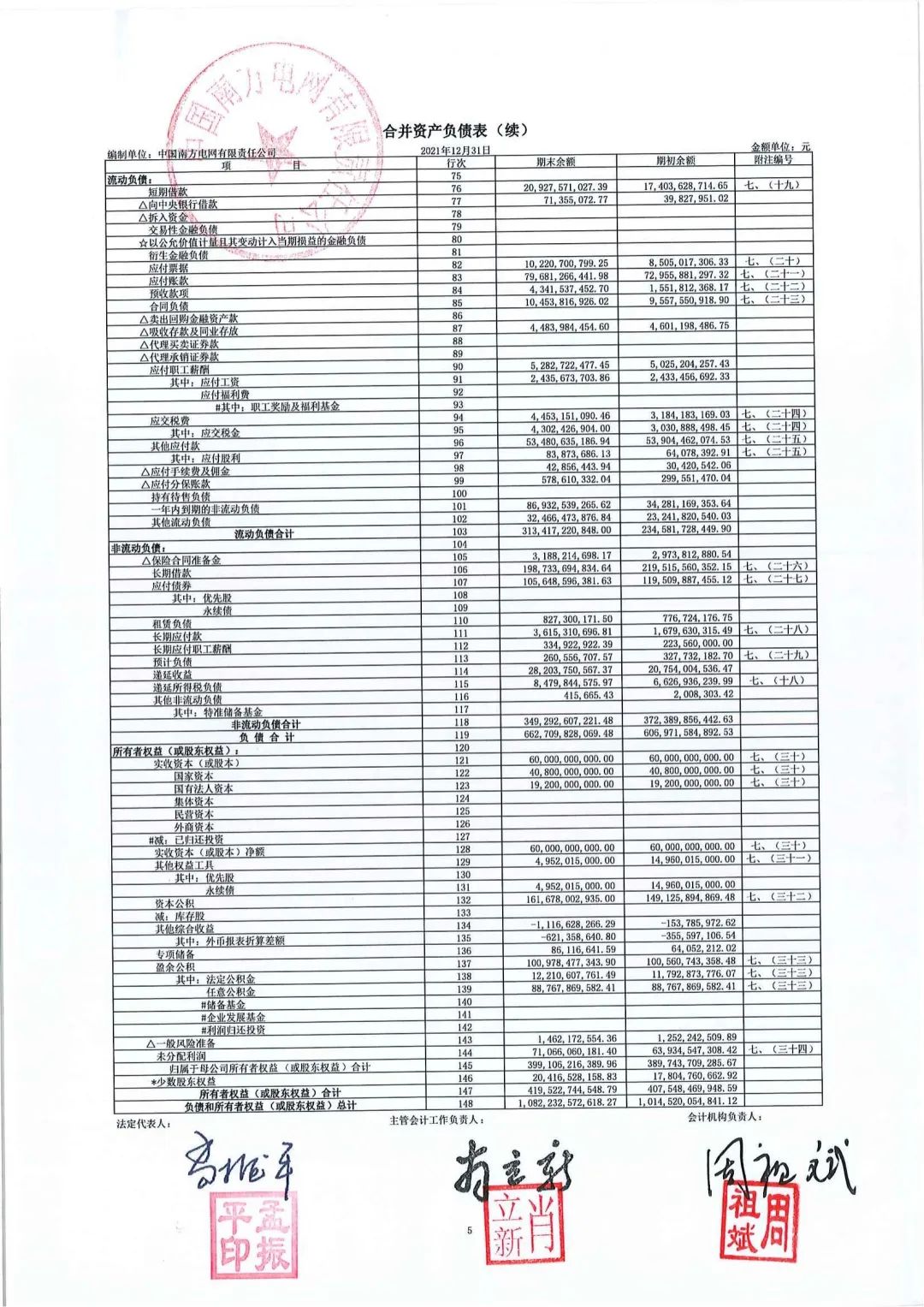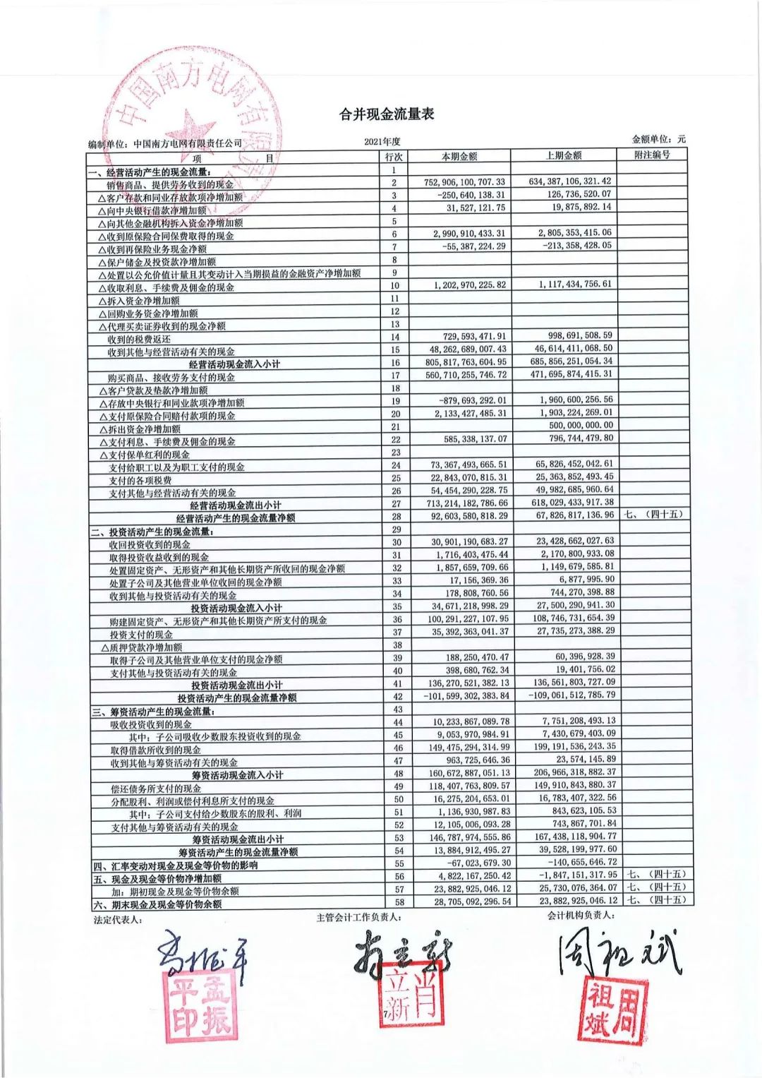 本網(wǎng)訊 4月29日,中國南方電網(wǎng)有限責任公司發(fā)布2021年財務報告。