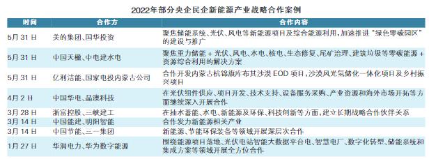2022年部分央企民企新能源產業(yè)戰(zhàn)略合作案例
